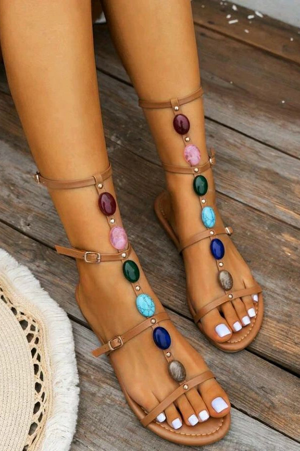 Buckle Strap Colorful Pearl Beach Resort Style Flat Sandals