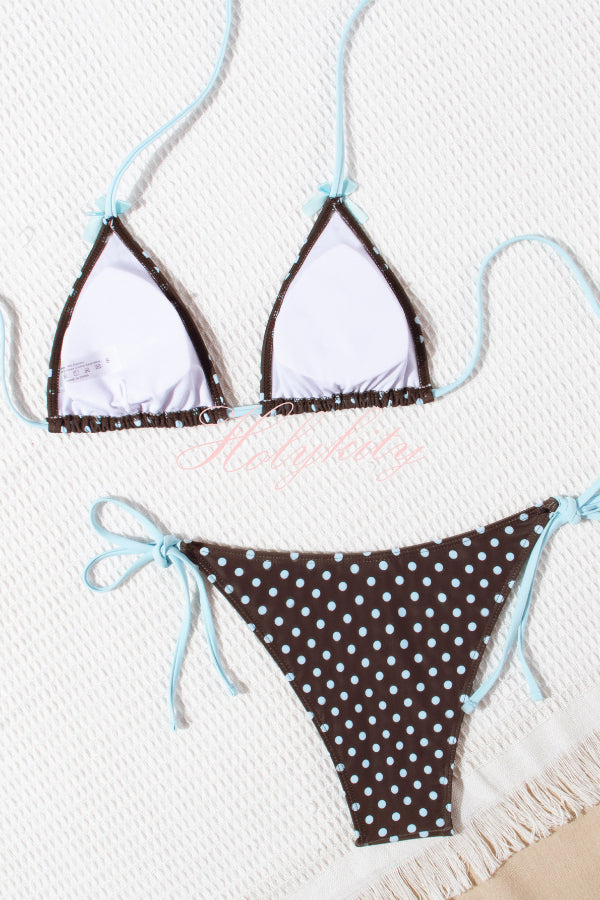 Polka Dot Print Bow Tie Stretch Two-piece Bikini Swimsuit