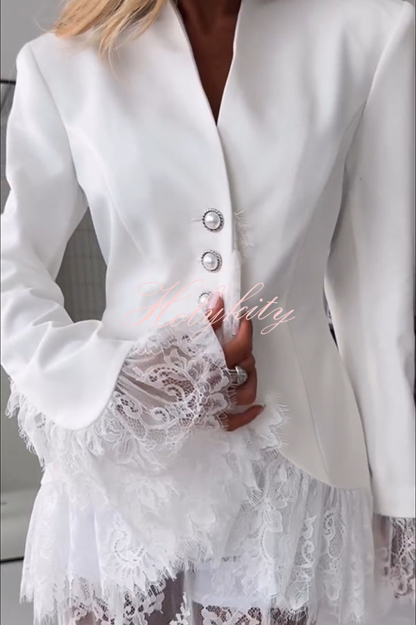 - Sleeve Type: Lace Trim Long Sleeve