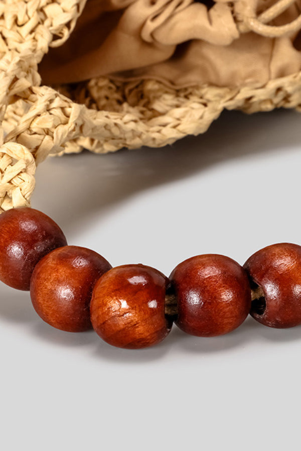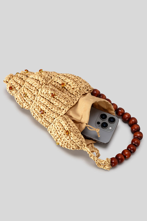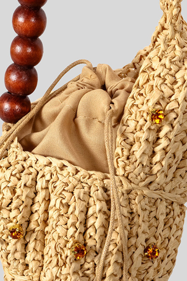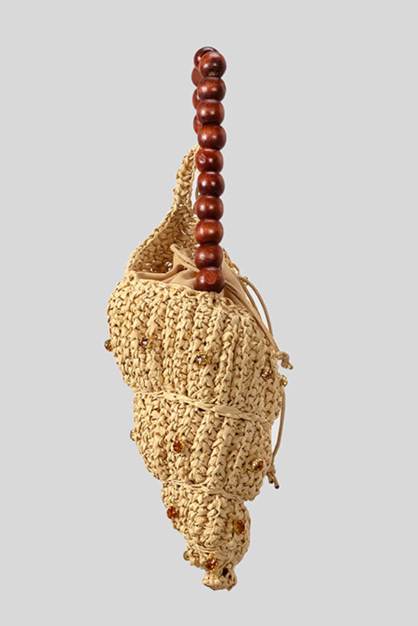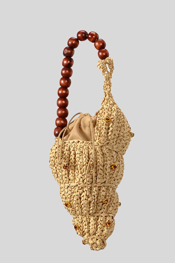 Seashell-shaped Wooden Beaded Zircon-embellished Straw Bag