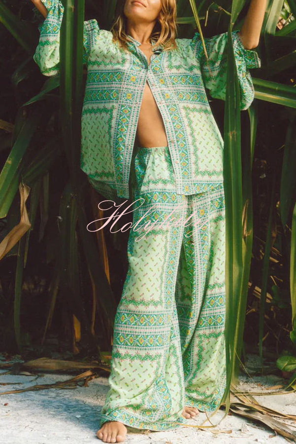 - A summery fresh garden green mosaic pattern brings sweet dreams to life on lustrous silk, perfectly capturing the splendor of the seaside.