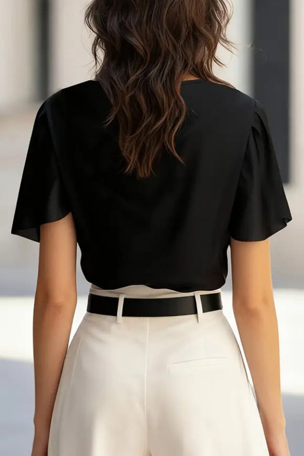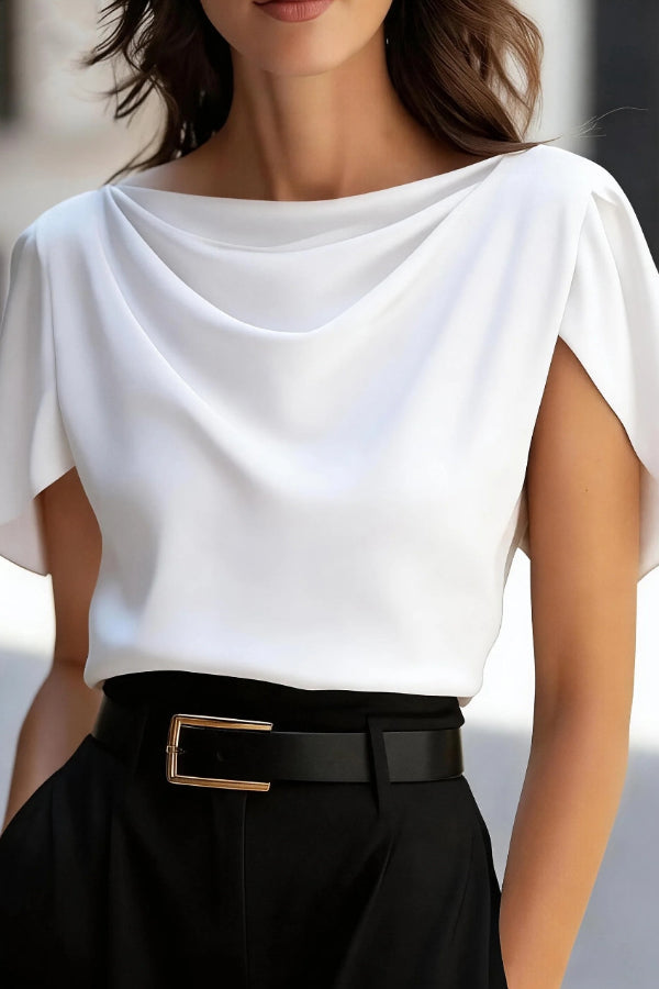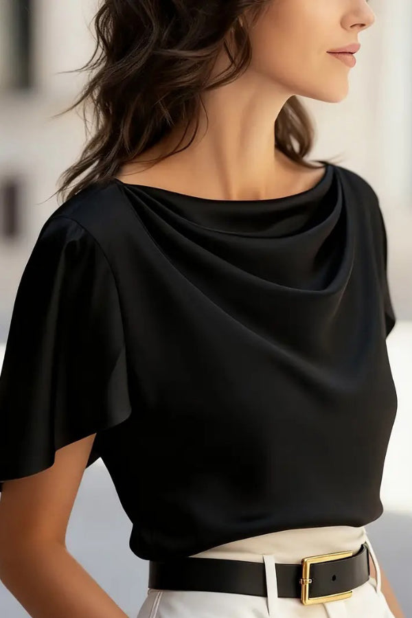 Solid Color Satin Drape Casual Loose Short-sleeved Top