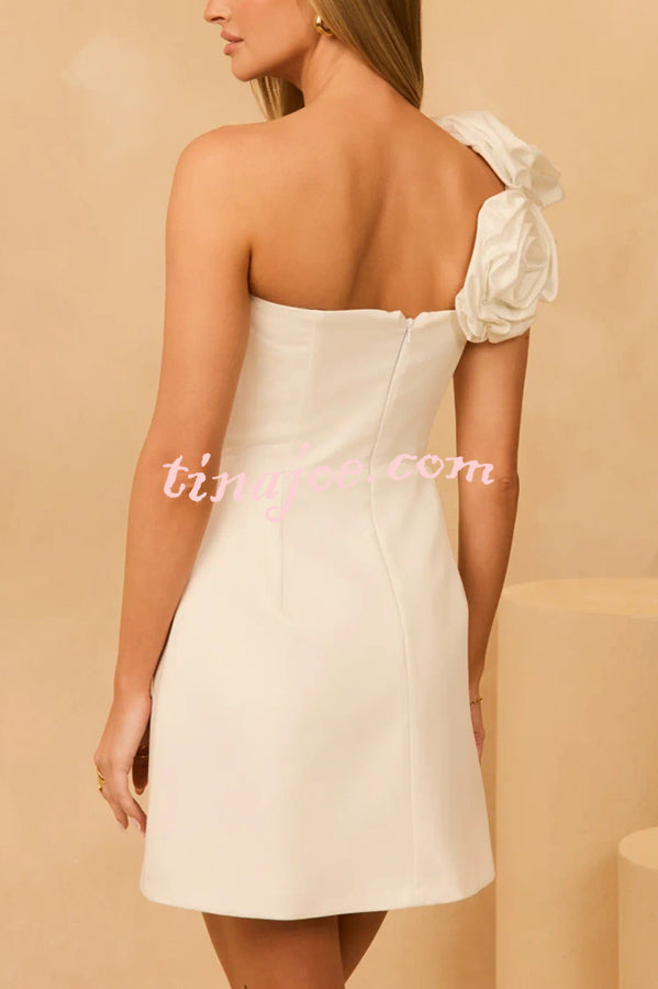 - Neckline: 3D Floral Asymmetrical One Shoulder