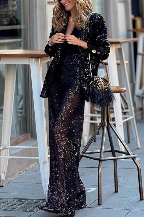 Special Treat Sequin High Rise Wide Leg Party Pants