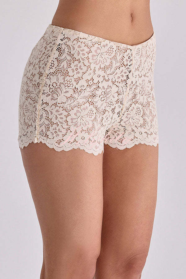- This corset features delicate lace overlay, a fitted waist, a pointed collar, and a back zipper closure. The matching shorts have a cute, short design with a V-shaped waistband for a slimming effect. The garment offers excellent elasticity for comfortable wear, and a side zipper further enhances ease of dressing.Our distinctive clothing will add instant style to your wardrobe.