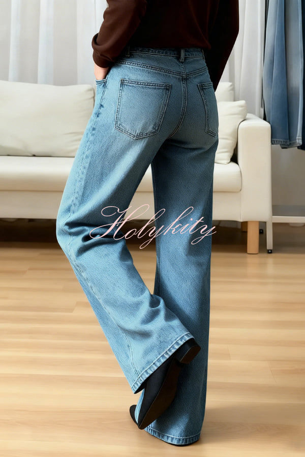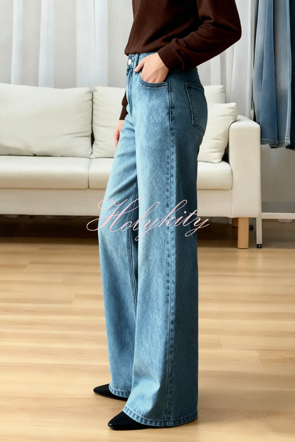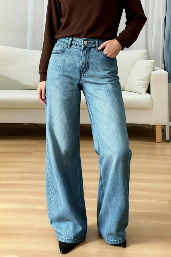 Stylish Casual Loose Pockets Straight-leg Wide-leg Jeans