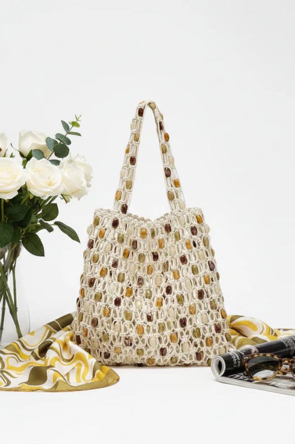 Stylish Woven Beaded Large Capacity Handbag