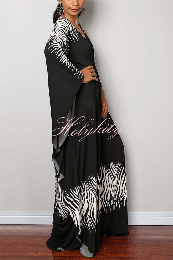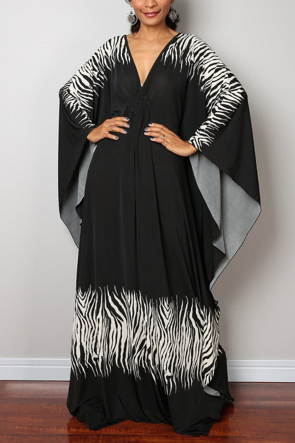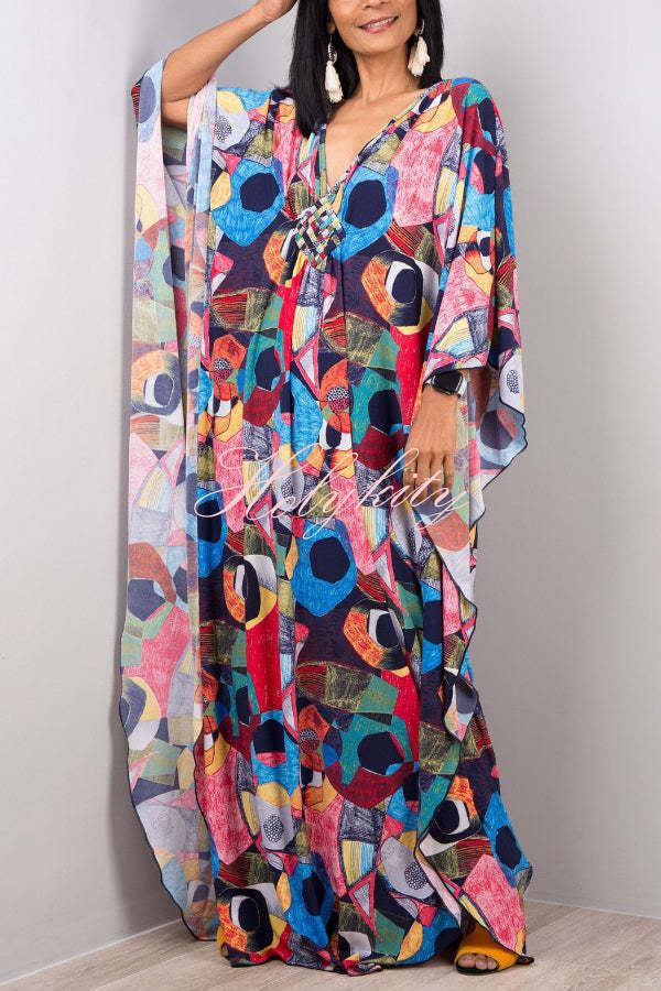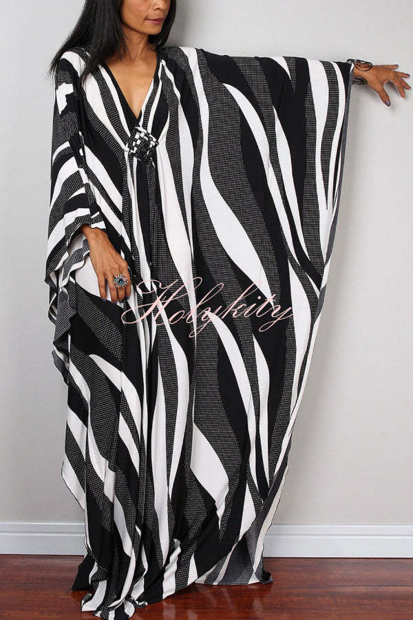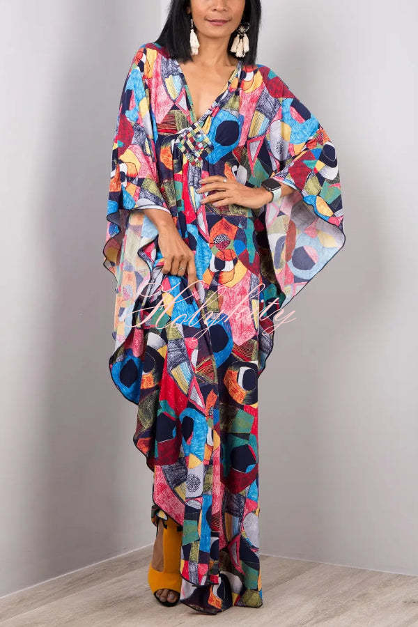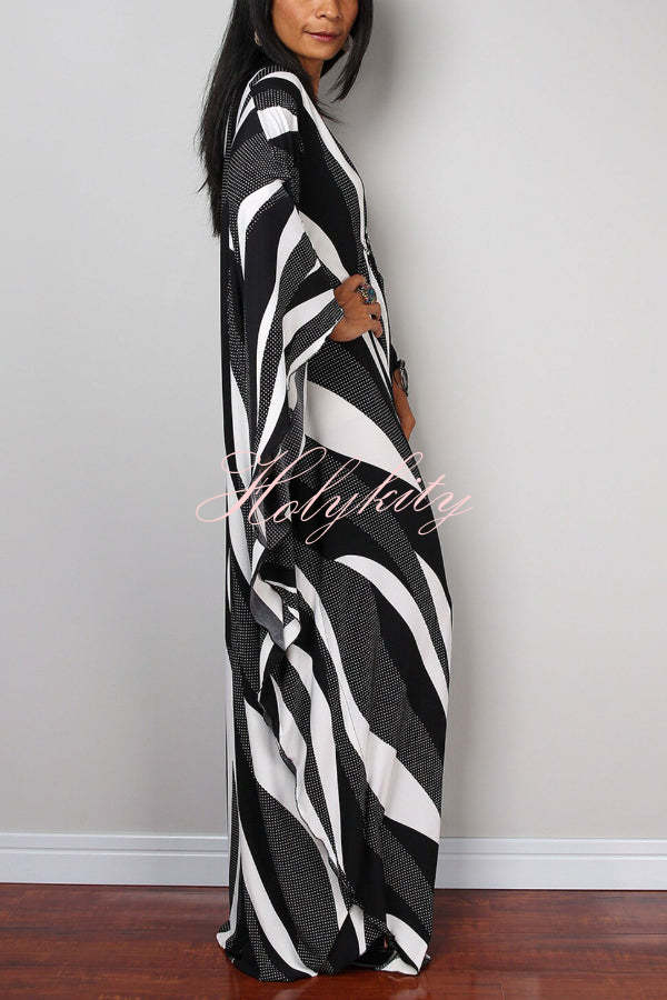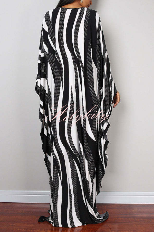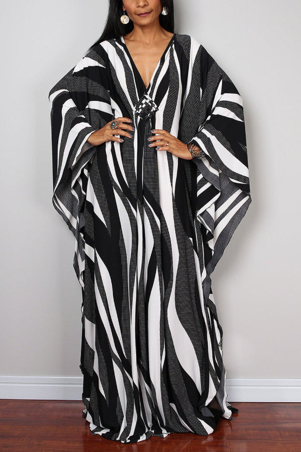 Unique Print Loose V-Neck Batwing Sleeve Casual Maxi Dress