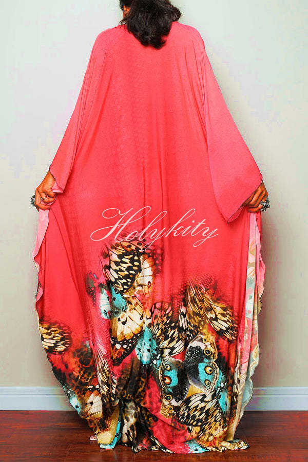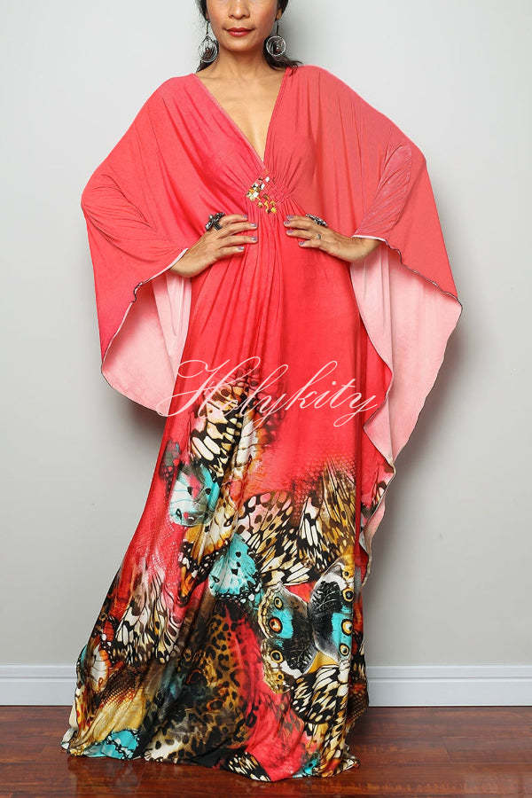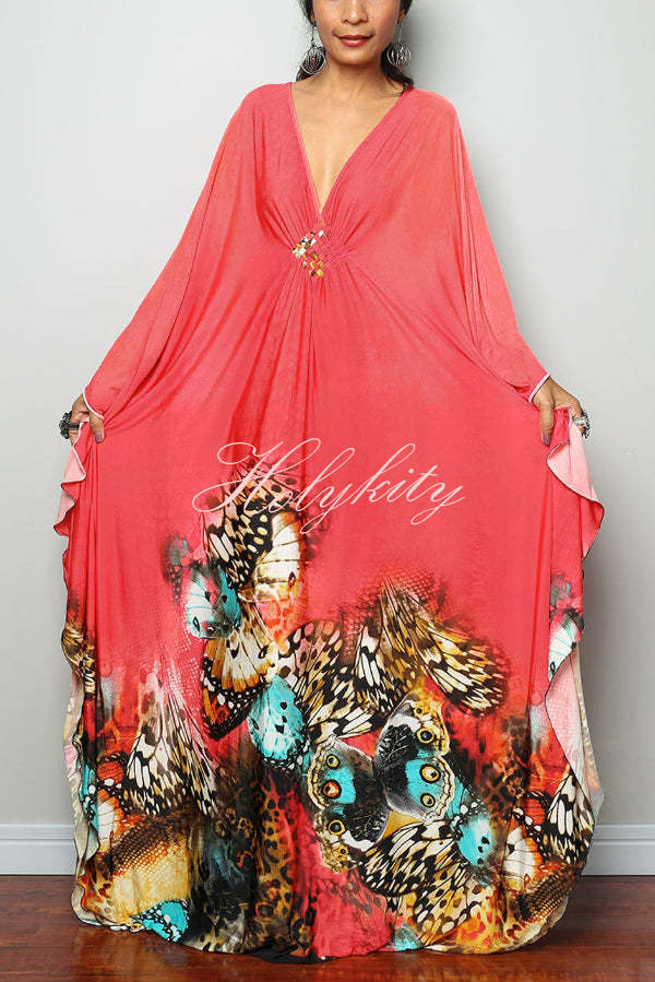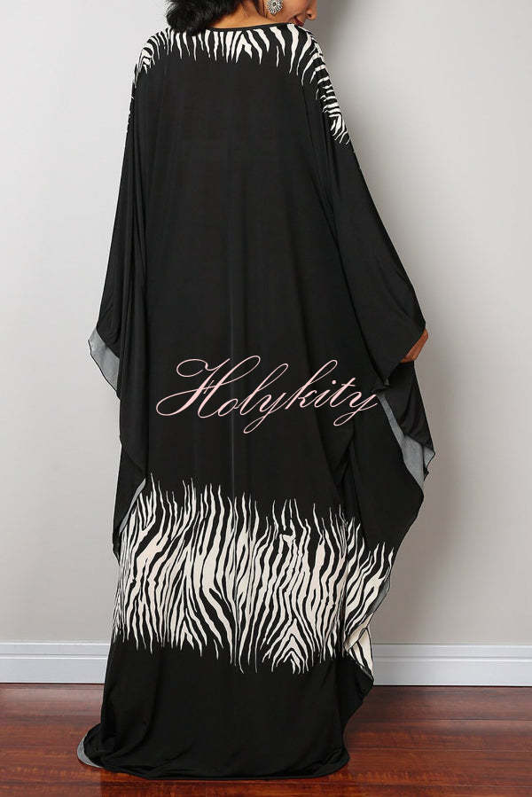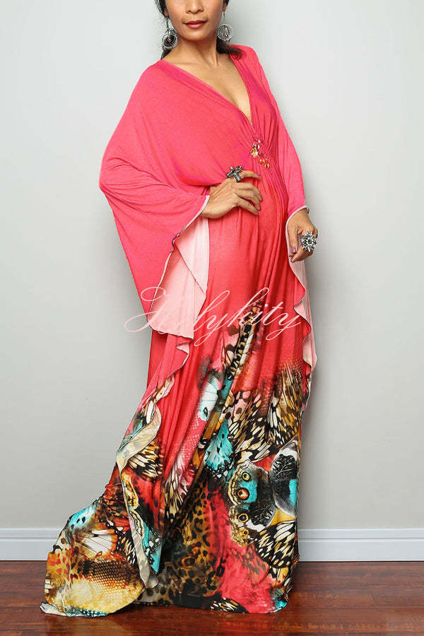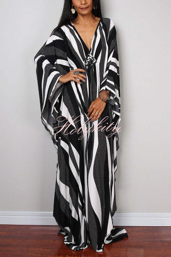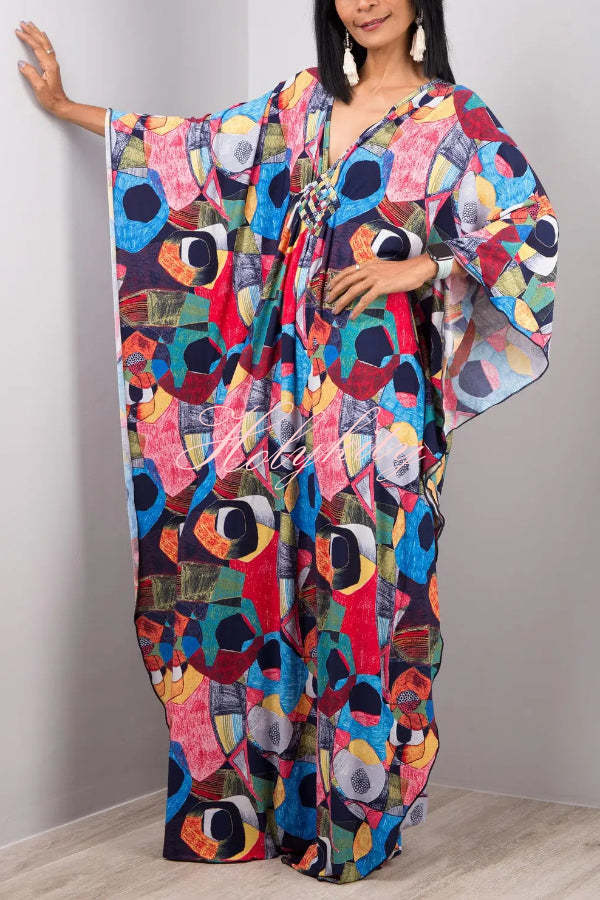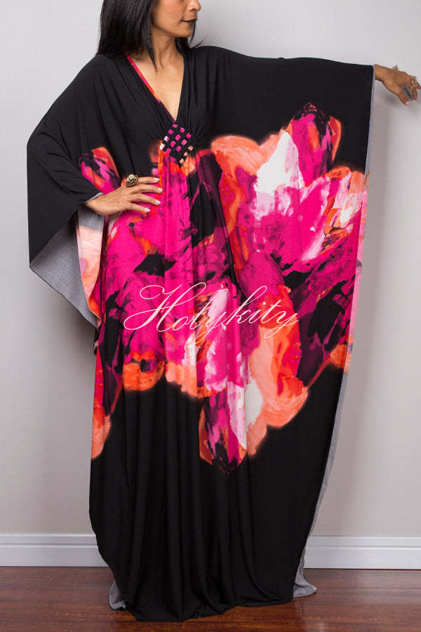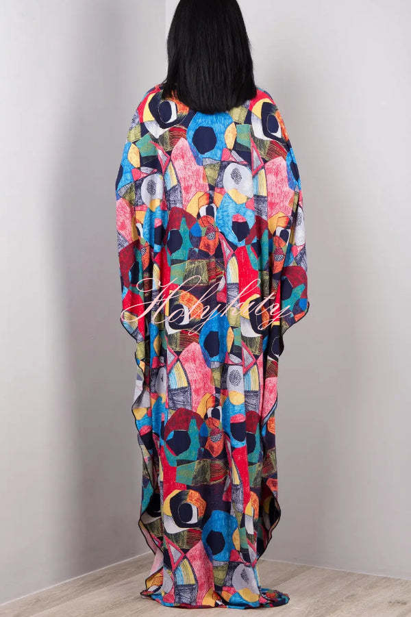 Unique Print Loose V-Neck Batwing Sleeve Casual Maxi Dress