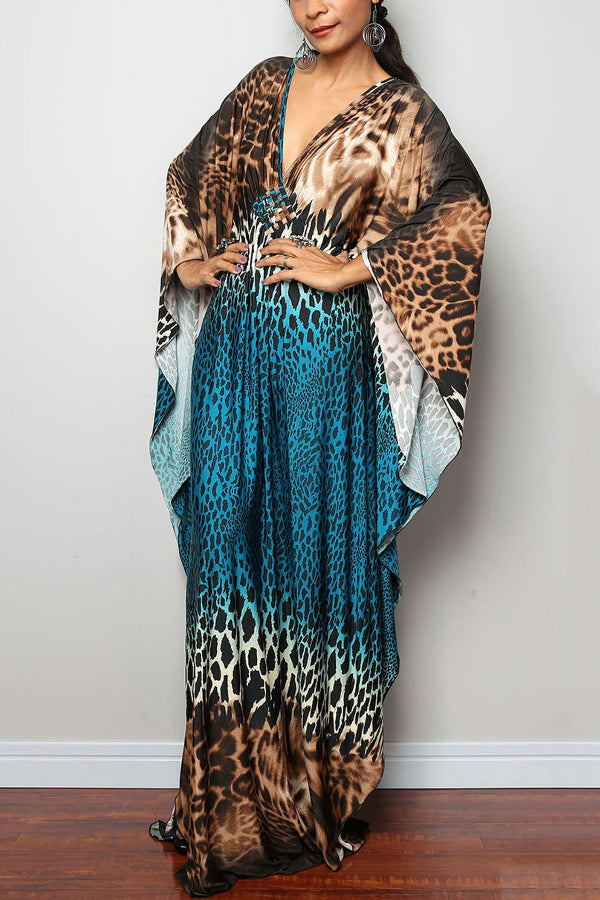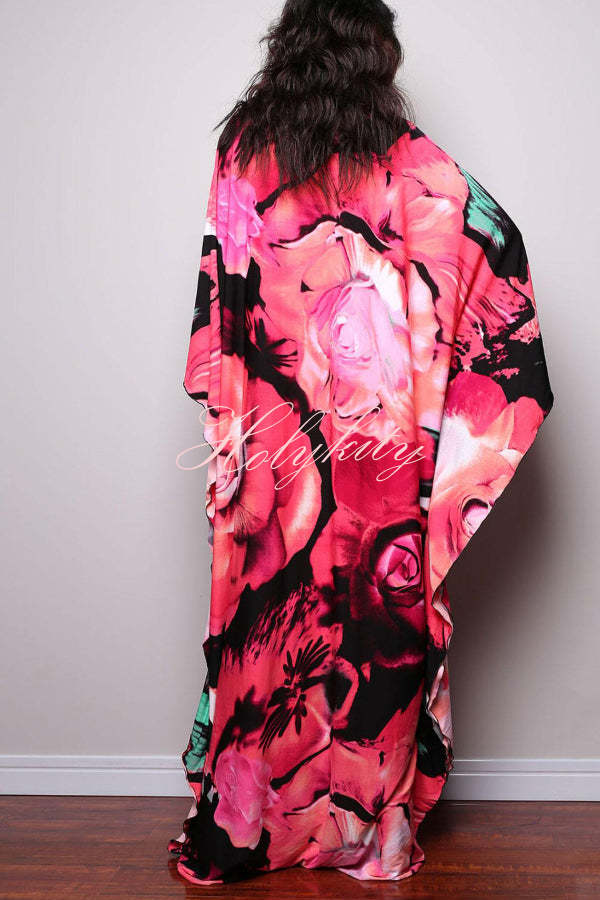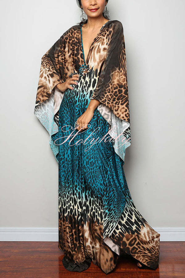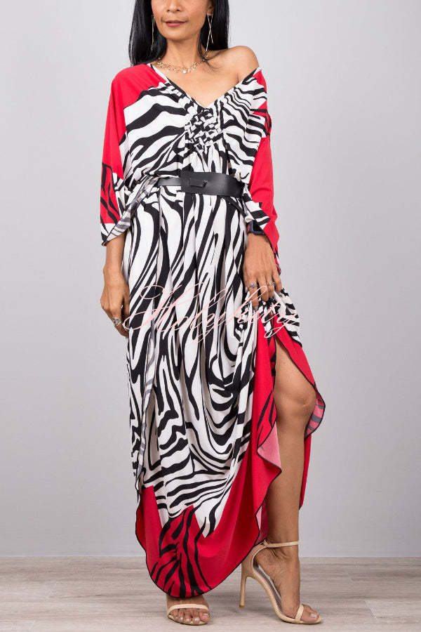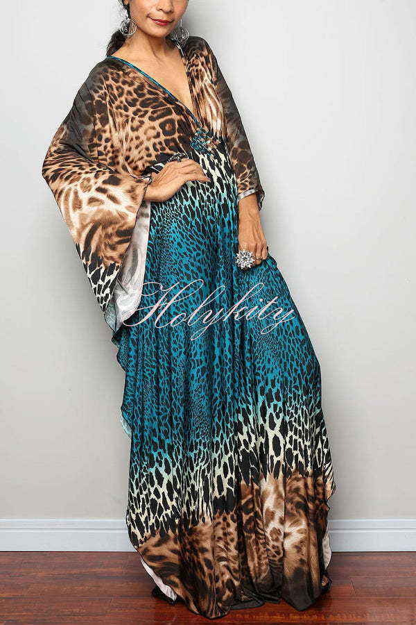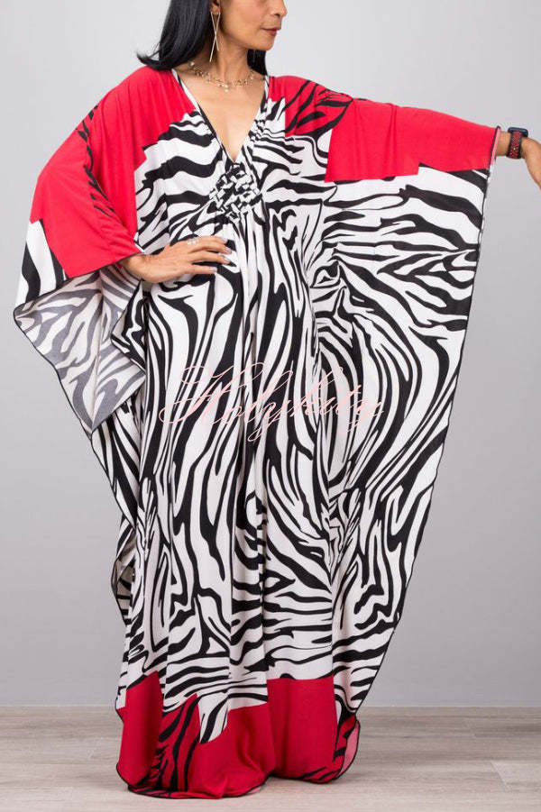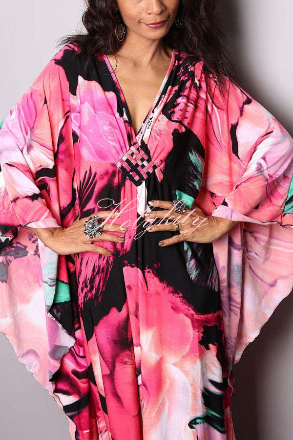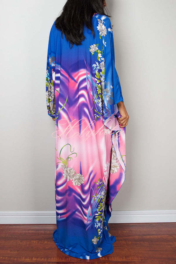Unique Print Loose V-Neck Batwing Sleeve Casual Maxi Dress