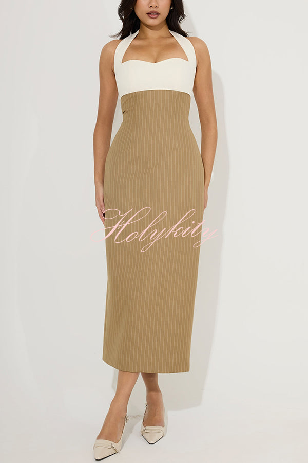 The Cotton Mix Pinstripe Midi Dress is defined by a two-tone design in a camel hue, featuring a classic cinched waist, discreet back zip and a sweetheart neckline in a sleeveless silhouette. Crafted from responsible fibres, it's the perfect midi dress to carry you seamlessly from day to night. Our distinctive clothing will add instant style to your wardrobe.-