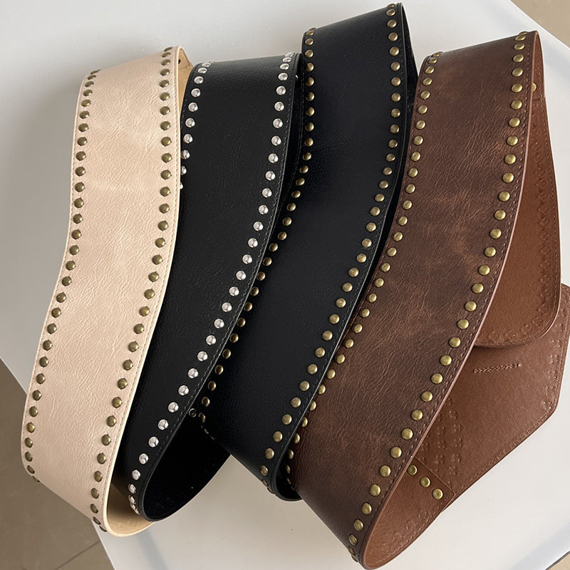 Vintage Faux Leather Rivet Pin Buckle Wide Belt