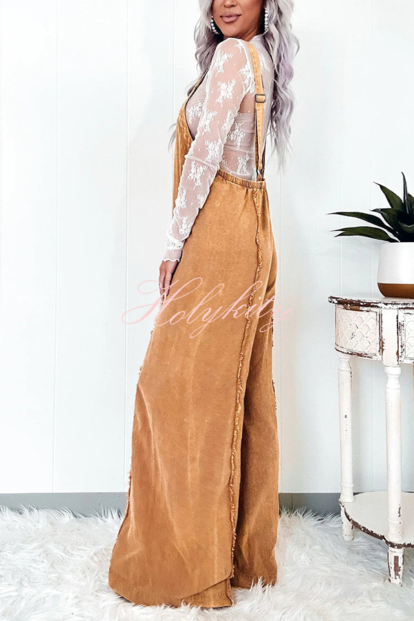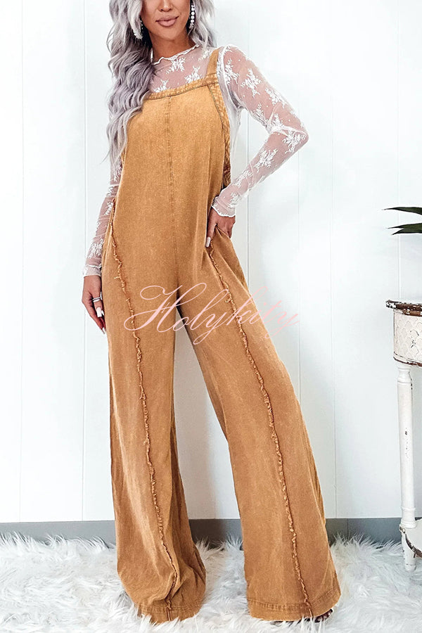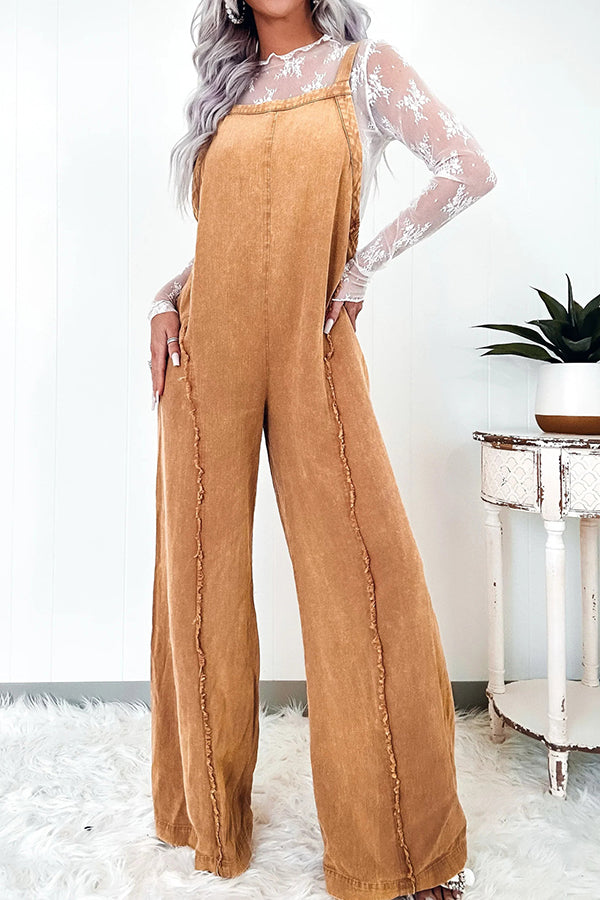 - This 100% cotton mineral washed jumpsuit is perfect for a casual day out. Featuring adjustable straps and frayed seams, you'll stay comfortable while maintaining a stylish look. The perfect blend of comfort and fashion, you can't go wrong with this jumpsuit.Our distinctive clothing will add instant style to your wardrobe..