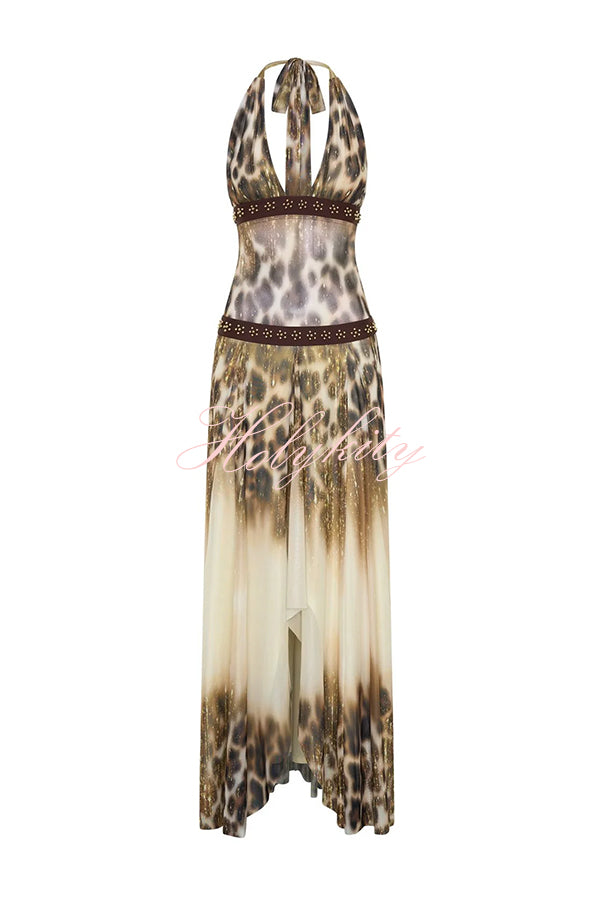 - This dress's viral success is no accident; it's designed to create an eye-catching look. The deep V-neck, halter-neck straps, open back, and metal clasp at the back exude elegance. The skirt cascades down like a waterfall, adorned with delicate beading at the waist and below the bust. Paired with wedge heels and minimalist gold jewelry, this dress makes you the center of attention.Our distinctive clothing will add instant style to your wardrobe.